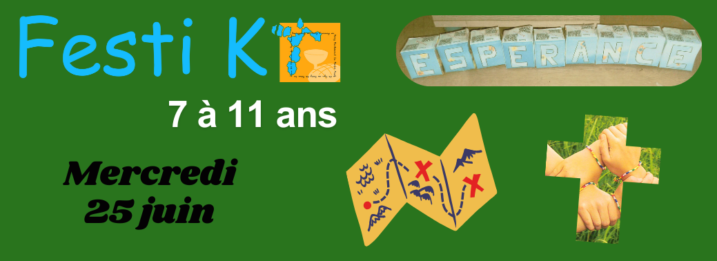 Cet après-midi est ouvert à tous les enfants de 7 à 11 ans. Les enfants de catéchèse peuvent inviter des camarades qui n’ont pas suivi la catéchèse cette année.